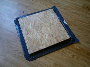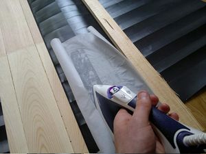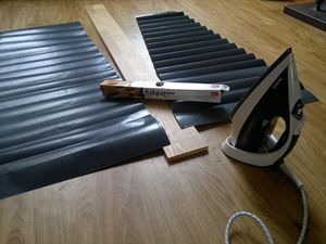 | + | [[Bestand:2015-09-20-157.jpg|thumb|materiaal voor het lijmen: bakfolie, planken en strijkbout]] | ||