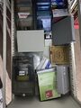 De stellingkasten (behalve ivar) en rolcontainers moeten ook weg.