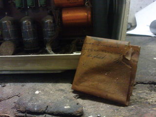 before restauration, the still dirty anita mk9. found a very oily piece of paper with a repairlog.