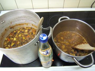 • Laat het geheel op laag vuur een half of heel uurtje inkoken. Voeg nog wat mate toe als het te droog wordt.